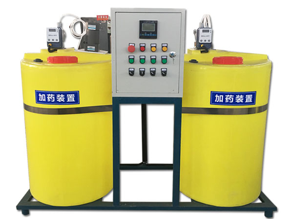 加藥裝置根據所需藥劑濃度,在攪拌箱內配置,經攪拌器攪拌均勻后投入溶液箱、用計量泵向投藥點或指定系統中輸送所配制的溶液。成套加藥裝置具有結構緊湊、安全簡單、操作使用簡便等特點。加藥裝置還可根據用戶不同工藝流程的要求,進行有針對性的設計、配置必要的部件,實現自動遠程控制等功能。