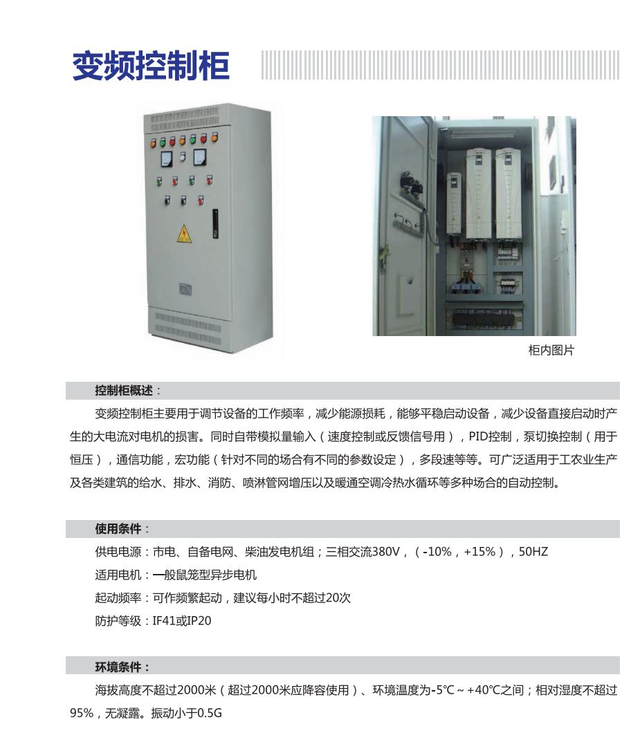 現今主要產品有:直流屏、變頻柜、PLC控制柜、軟啟動柜、動力箱、照明箱、電能計量箱和各種非標控制箱。